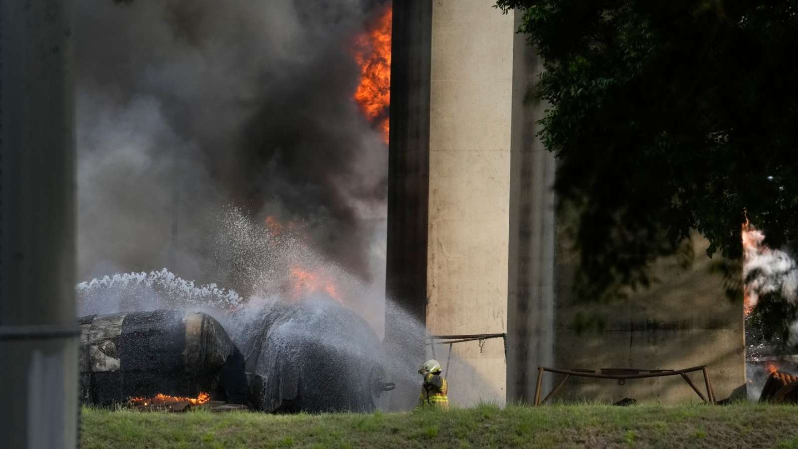 Как сообщали власти и местные СМИ, возгорание началось после взрыва топливной цистерны. По данным AP, взрыв произошёл около 16:00 по местному времени, а камера наблюдения зафиксировала мощный огненный шар, поднявшийся к верхней части моста. На переправе в этот момент находились автомобили, однако водители не пострадали.